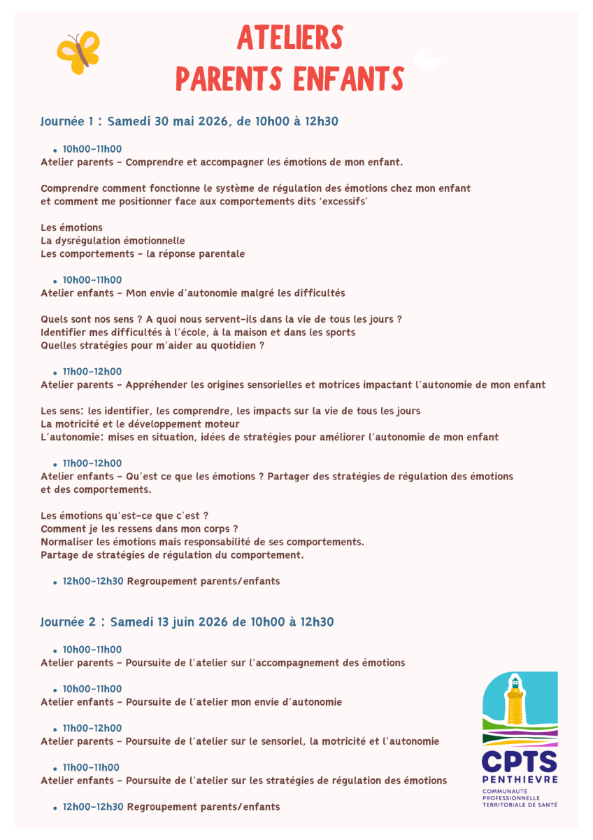 Les données sont destinées exclusivement aux 3 professionnelles en charge des ateliers, et aux 2 salariés de la CPTS du Penthièvre, pour l'organisation et la gestion des ateliers. Elles ne seront transmises à aucun tiers sans votre accord.